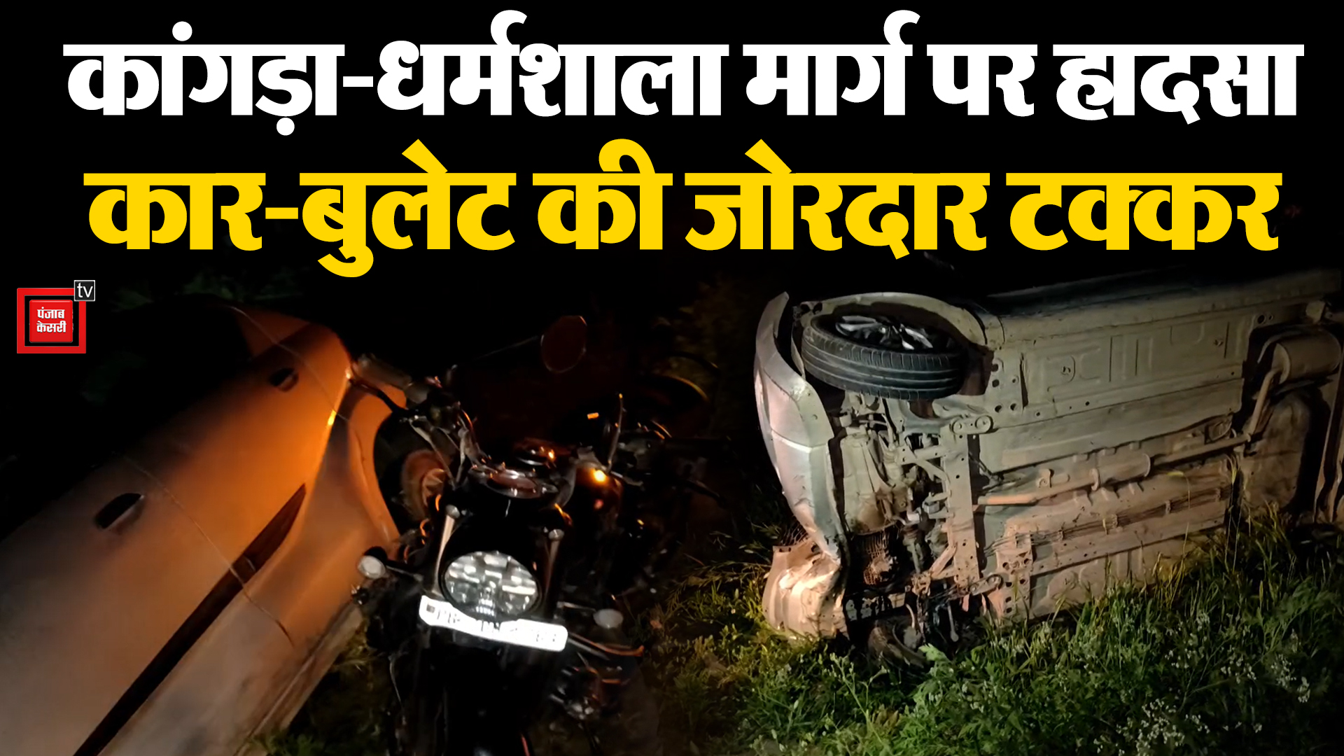 कार और बुलेट की जोरदार टक्कर, कार पलटी, बुलेट सवार घायल
