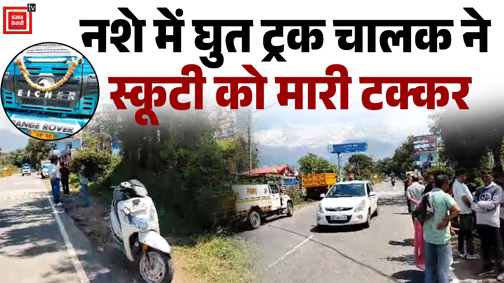 कांगड़ाः नशे में घुत ट्रक चालक ने स्कूटी को मारी टक्कर, देखें मौके की तस्वीरें