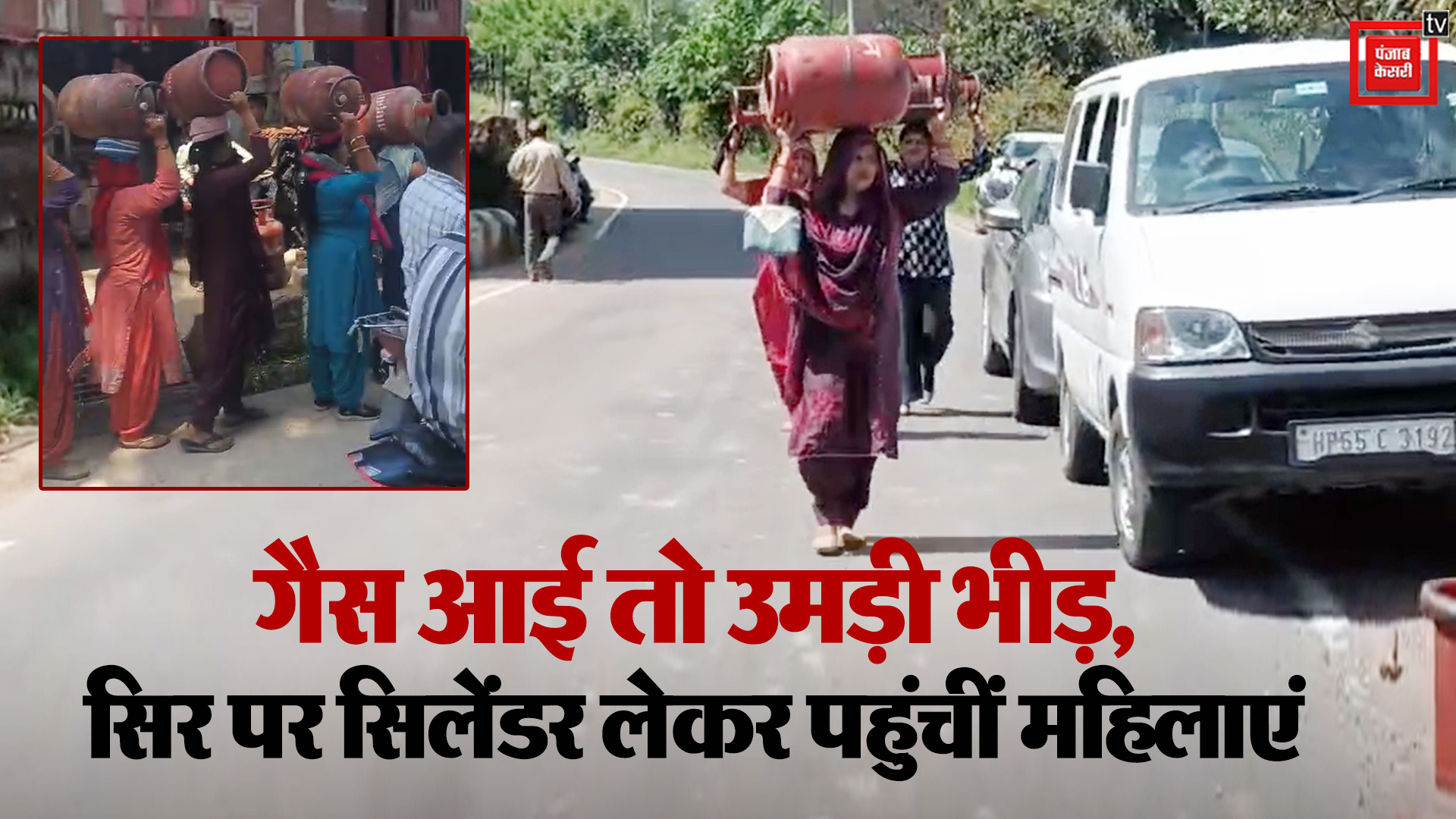 बड़ा बाजार में गैस सप्लाई पहुंचते ही लगी लंबी कतारें, सिर पर सिलेंडर लेकर पहुंचीं महिलाएं