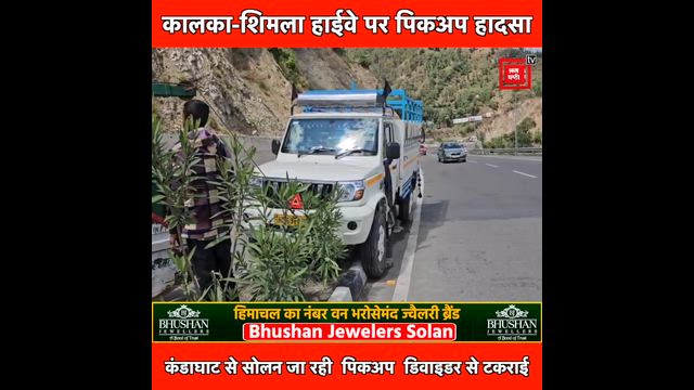 सोलन के स्लोगड़ा में अनियंत्रित पिकअप डिवाइडर से टकराई, चालक सुरक्षित