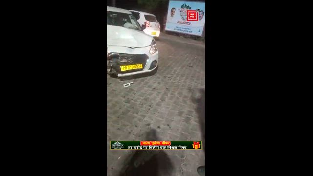 सड़क पर बिखरी बजरी से स्किड हुई कार, श्मशानघाट के ऊपर जा कार, पिछले हिस्से में घुसा लोहे का गार्डर